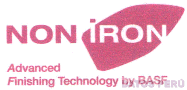 La denominación NON IRON (sin reivindicar) escrita en letras características acompañada de una figura geométrica irregular; en la parte inferior aparece la frase ADVANCED FINISHING TECHNOLOGY BY BASF (sin reivindicar ADVANCED FINISHING TECHNOLOGY) escrita en letras características, todo en la combinación de colores rojo y blanco; conforme al modelo adjunto