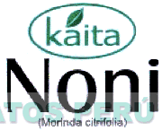 El logotipo conformado por la denominación NONI escrita en letras características de color negro, en la parte superior se aprecia la denominación KAITA con una hoja sobre la letra A todo dentro de una figura ovalada de color verde y en la parte inferior se aprecia la denominación MORINDA CITRIFOLIA entre paréntesis y en color negro; conforme al modelo adjunto