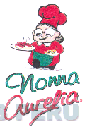 La denominación NONNA AURELIA escrita en letras características, en la parte superior la representación estilizada de una cocinera con un plato de spaghetti en una mano y en la otra un pastel de acelga, todo en los colores verde, rojo, rosado, negro, crema y amarillo; conforme al modelo adjunto