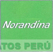 La denominación NORANDINA escrita en letras características, en la combinación de colores blanco y verde; conforme al modelo adjunto.