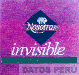 LA ETIQUETA CUADRANGULAR DE COLOR FUCSIA. EN LA PARTE SUPERIOR CENTRAL APARECE UNA FIGURA GEOMETRICA EN COLOR AZUL OSCURO DENTRO DE LA CUAL APARECE UNA FIGURA EN FORMA DE OVALO EN COLOR BLANCO Y DENTRO DE ESTA APARECE LA FIGURA DE UNA FLOR EN COLORES VERDE Y ROSADO, DEBAJO DE ESTA FIGURA SE LEE LA PALABRA NOSOTRAS, ESCRITA EN FORMA ESPECIAL Y EN COLOR BLANCO. DEBAJO DE ESTA FIGURA SE LEE LA PALABRA INVISIBLE EN COLOR BLANCO, EN LA PARTE INFERIOR APARECE UNA FRANJA EN COLOR VERDE, CONFORME AL MODELO ADJUNTO,