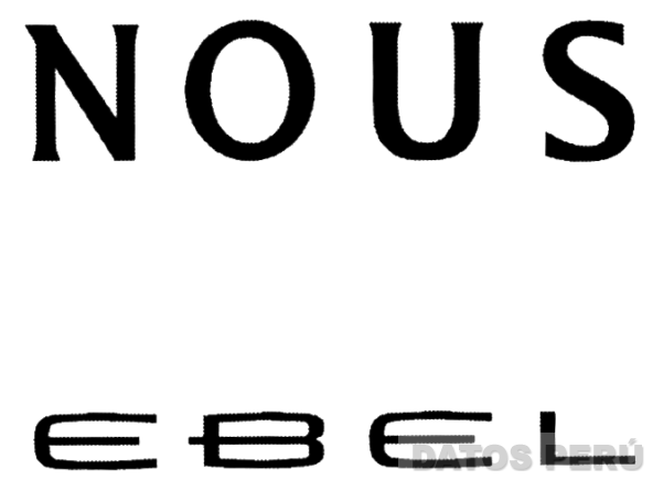 El logotipo conformado por la denominación NOUS EBEL escrita en letras características las cuales se encuentran ubicadas una en la parte superior y la otra en la parte inferior del logotipo sin reivindicar colores; conforme al modelo adjunto