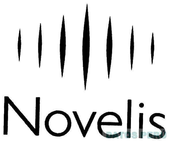 La denominación NOVELIS escrita en letras características, y en la parte superior la representación estilizada de siete figuras irregulares con terminación en punta; conforme al modelo adjunto