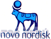 La denominación NOVO NORDISK escrita en letras estilizadas y la figura del buey apis, todo en la combinación de colores azul y celeste; conforme al modelo adjunto