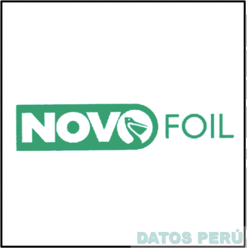 El logotipo conformado por la denominación NOVOFOIL escrita en letras características donde la partícula NOVO se ubica dentro de un rectángulo que presenta uno de sus bordes redondeado, y dentro de la segunda letra O se ubica la figura estilizada de un pelícano, en los colores blanco y verde; conforme al modelo adjunto