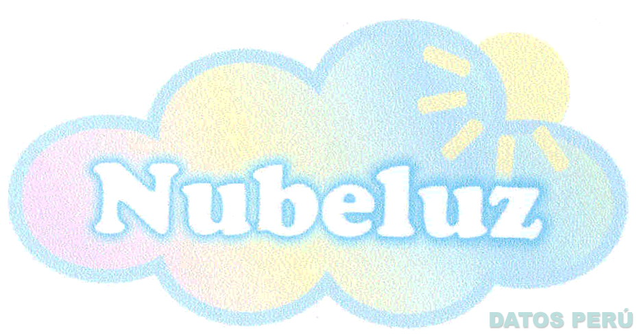 El logotipo conformado por la denominación NUBELUZ escrita en letras características, dentro de la representación estilizada de una nube y la figura del sol, en la combinación de colores rosado, amarillo y celeste; conforme al modelo adjunto