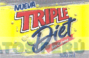El logotipo conformado por la denominación NUEVA TRIPLE DIET escrita en letras características, en la parte central se aprecian figuras de burbujas y en la parte inferior se aprecia un rectángulo conteniendo la frase SIN CAFEÍNA escrita en letras características, todo en los colores gris, azul, rojo, amarillo, blanco y negro; conforme al modelo adjunto