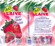 La etiqueta que tiene un fondo de color verde con pincelazos de color blanco, y debajo un fondo de color blanco y rosado, simulando la caída del yogurt de fresa; en la parte superior aparece la palabra NUEVO escrita en letras características de color blanco con bordes verdes; debajo, dentro de una figura característica en color amarillo la palabra BIO escrita en letras características de color verde; seguida de la denominación LAIVE escrita en letras características de color rojo con bordes blancos, debajo la descripción del producto YOGURT CREMOSO SALUDABLE escrita en letras características de color azul y en la parte inferior la palabra FRESA escrita en letras características de color azul con bordes blancos, en diversas partes de la etiqueta aparecen figuras de fresas de color rojo con tallo y hojas color verde, a la derecha aparece la información relacionada con el producto; conforme al modelo adjunto