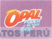 El logotipo conformado por la denominación OPAL escrita en letras características, en la parte inferior se aprecia unas esferas seguidas de una figura de forma irregular y la frase PODER ACTIVO (sin reivindicar); en la parte superior se aprecia la palabra NUEVO (sin reivindicar); todo contenido en una figura rectangular y en los colores lila, amarillo, fucsia, verde, blanco, celeste y anaranjado; conforme al modelo adjunto
