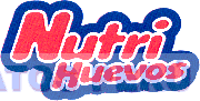 El logotipo conformado por la denominación NUTRI HUEVOS escrita en letras características de color rojo con una línea blanca al borde de las letras, con un borde azul como fondo; conforme al modelo adjunto