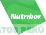 El logotipo conformado por una figura de cuatro lados distintos donde se aprecia la denominación NUTRIBOR escrita en letras características donde se aprecia la letra N en mayúscula seguido de las demás letras en minúsculas; sobre una letra S conformada por tres elementos curvos en el fondo, todo en los colores blanco y verde pantone 355 (claro y oscuro); conforme al modelo adjunto