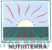 El logotipo conformado por la denominación NUTRITERRA escrita en letras características de color marrón que acompaña al elemento figurativo constituido por un recuadro en el que se observa un sol naciente de color amarillo pálido con rayos de color anaranjado sobre un campo de cultivo de color verde y marrón, todo bajo un cielo celeste; conforme al modelo adjunto