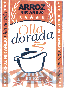 La denominación OLLA DORADA ARROZ NIR AÑEJO y logotipo (se reivindica colores), conforme al modelo