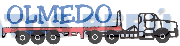 El logotipo conformado por la denominación OLMEDO escrita en letras características y la representación estilizada de un semiremolque y un remolcador en la combinación de colores rojo, azul y negro; conforme al modelo adjunto