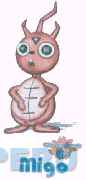 La figura de un personaje característico, al lado derecho la denominación OLOCOONS O2 escrita en letras características sobrepuesta a un diseño característico, y debajo de dichas denominaciones se aprecia la denominación MIGO escrita en letras características, todo en la combinación de colores rojo, azul, blanco, gris, rosado y marrón claro; conforme al modelo adjunto