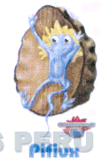 La figura de un personaje característico, al lado derecho la denominación OLOCOONS O2 escrita en letras características sobrepuesta a un diseño característico, y debajo se aprecia la denominación PIFIUX escrita en letras características, todo en la combinación de colores rojo, azul, blanco, celeste, beige, amarillo y tonalidades del color marrón; conforme al modelo adjunto
