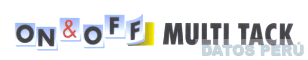LA DENOMINACION ON & OF MULTI TACK Y EL DISEÑO EN EL QUE SE APRECIAN LAS PALABRAS ON & OFF DENTRO DE CUADRADOS EN FORMA DE PAGINAS, REIVINDICANDO LOS COLORES CELESTE, NEGRO, ROJO, AMARILLO Y BLANCO; CONFORME AL MODELO ADJUNTO