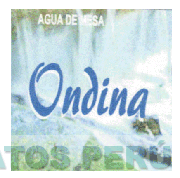 El logotipo conformado por la denominación ONDINA escrita en letras características de color azul y la representación de un paisaje con una caída de agua, todo en los colores verde, celeste, blanco y azul; conforme al modelo adjunto