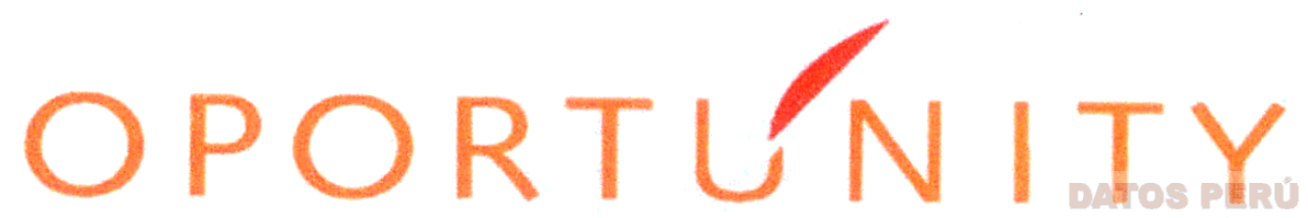 El logotipo conformado por la denominación OPORTUNITY escrita en letras características, destacando el diseño estilizado de una pestaña sobre la letra U, en los colores anaranjado y rojo; conforme el modelo adjunto
