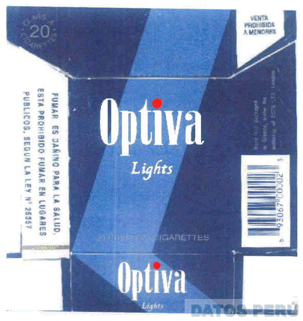 La denominación OPTIVA escrita en letras características de color blanco, el punto de la letra I es rojo y todo está sobre un fondo azul marino con una franja azulina al medio, y demás frases alusivas al producto; conforme al modelo adjunto