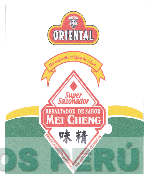 La denominación ORIENTAL UN TOQUECITO MÁGICO DE SABOR SUPER SAZONADOR RESALTADOR DE SABOR MEI CHENG y logotipo (se reivindica colores), conforme al modelo