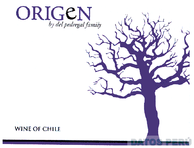 La denominación ORIGEN BY DEL PEDREGAL FAMILY WINE OF CHILE y logotipo (se reivindica colores), conforme al modelo