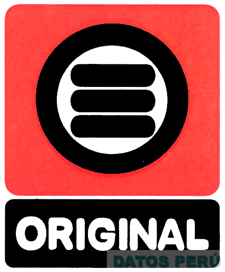 El logotipo conformado por una figura rectangular, la cual contiene un círculo con tres líneas horizontales en su interior, debajo la denominación ORIGINAL escrita en letras características, en colores rojo, negro y blanco; conforme al modelo adjunto