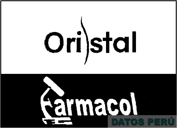 El logotipo conformado por la denominación ORISTAL escrita en letras características en la cual se aprecia la letra S de forma estilizada y en la parte inferior la denominación FARMACOL escrita en letras características donde la letra F asemeja la forma de un microscopio, todo dentro de un cuadrado dividido en dos segmentos; en los colores blanco y negro; conforme al modelo adjunto