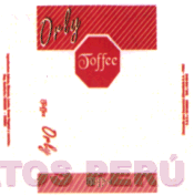 LA LAMINA TRANSPARENTE EN CUYOS EXTREMOS SUPERIOR E INFERIOR HAY UNA FRANJA ROJA CON RAYAS BLANCAS QUE CRUZAN EN FORMA OBLICUA DICHAS FRANJAS. EN LA FRANJA SUPERIOR AL MARGEN IZQUIERDO SE ENCUENTRA LA DENOMINACION ORLY DE COLOR BLANCO DELINEADAS EN COLOR NEGRO Y LAS LETRAS GRANDES; Y EN LA INFERIOR LA PALABRA TOFFEE EN LETRAS MINUSCULAS Y EN COLOR BLANCO CON DELINEADO NEGRO; EN LA FRANJA SUPERIOR AL CENTRO TOMANDO UNA PARTE DICHA FRANJA SE ENCUENTRA UN OCTAGONO ROJO CON BORDE BLANCO EN CUYO INTERIOR SE ENCUENTRA LA PALABRA TOFFEE EN COLOR BLANCO, AL EXTREMO IZQUIERDO ESTA LA FRASE TOFFEE ORLY RESALTANDOSE EN LA MISMA LA PALABRA ORLY, TODO EN COLOR ROJO, AL REVERSO HAY DOS FRASES EN CADA UNO DE LOS EXTREMOS; EN UNO, LOS INGREDIENTES DEL PRODUCTO, Y EN EL OTRO LOS DATOS DE LA EMPRESA, REGISTRO SANITARIO, AMBAS EN COLOR ROJO; CONFORME AL MODELO ADJUNTO,