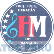 El logotipo conformado por una figura circular en cuyo interior se aprecia en la parte superior la denominación ORQ. FOLK. HURACÁN escrita en letras características, en el medio se aprecia la denominación HM DEL MANTARO ¡¡ QUÉ BACÁN!! escrita en letras características, al lado de la letra H se aprecia la clave de sol en forma estilizada y bordeando el lado izquierdo se aprecian cinco estrellas de cinco puntas, todo en los colores azul, rojo, blanco y turquesa; conforme al modelo adjunto
