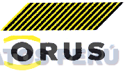 La denominación ORUS escrita en letras características en la parte superior una figura geométrica conformada por líneas diagonales, todo en los colores amarillo y negro; conforme al modelo adjunto