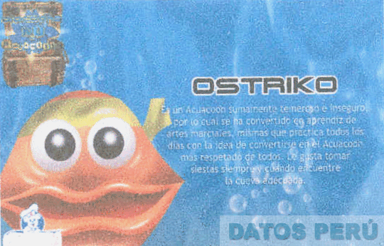 La denominación OSTRIKO escrita en letras características, las figuras de un pez y un oso estilizados, y demás frases sin reivindicar, en colores verde, amarillo, anaranjado, rojo, celeste, azul, blanco, negro y marrón; conforme al modelo adjunto