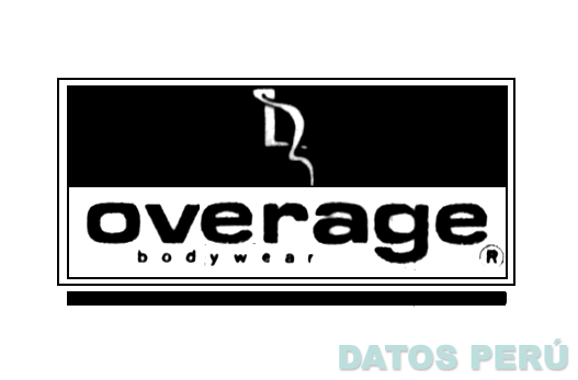 La denominación OVERAGE, color guinda en fondo blanco, debajo el complemento BODYWEAR color negro, y en la parte superior el monograma de las letras L, R, color blanco sobre fondo gris, todo enmarcado en un rectángulo gris, guinda, conforme al modelo adjunto