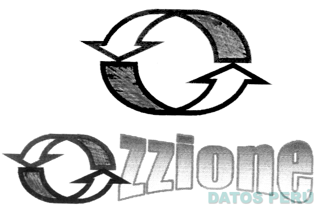EL LOGOTIPO CONFORMADO POR EL DISEÑO ESTILIZADO DE DOS FLECHAS, FORMANDO UN CIRCULO A MANERA DE LETRA O, Y LA DENOMINACION OZZIONE EN LETRAS ESTILIZADAS, SIENDO LA PRIMERA LETRA O IDENTICA EN CARACTERISTICAS AL DISEÑO ESTILIZADO DESCRITO CON ANTERIORIDAD; CONFORME AL MODELO ADJUNTO