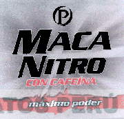 El logotipo conformado por la denominación MACA NITRO escrita en letras características apreciándose en la parte superior la letra P característica dentro de un círculo y en la parte inferior la frase CON CAFEÍNA, más abajo una franja con la frase MÁXIMO PODER; todo en colores negro, blanco, rojo y plomo, conforme al modelo adjunto