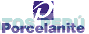 El logotipo conformado por la denominación PORCELANITE escrita en letras características, y la representación de la letra R dentro de una figura circular (sin reivindicar), sobre la cual aparece la representación de la letra P en forma característica, dentro de una figura semejante a un cuadrado, todo en color azul y blanco; conforme al modelo adjunto
