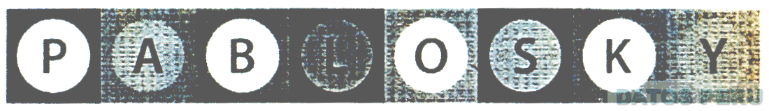 LA DENOMINACION PABLOSKY ESCRITA CADA LETRA DENTRO DE UN CIRCULO Y ENMARCADA CADA UNA EN UN CUADRADO, CONFORME AL MODELO ADJUNTO,