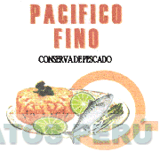 La denominación PACIFICO FINO escrita en letras características y debajo la frase CONSERVA DE PESCADO y el logotipo conformado por la figura de un círculo unido a una línea recta en la que se aprecia un plato conteniendo una porción de grated de pescado, dos rodajas de limón, un pescado y cebolla, todo en los colores rojo, negro, blanco, verde, anaranjado y gris; conforme al modelo adjunto