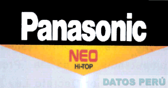 La etiqueta conformada por la denominación PANASONIC escrita en letras características y dentro de un rectángulo, debajo se aprecia una figura irregular y un triángulo conteniendo la denominación NEO HI-TOP escrita en letras características, todo en los colores negro, blanco, gris, amarillo y rojo; conforme al modelo adjunto