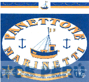 El logotipo conformado por la denominación PANETTONE MARINETTI escrita en letras características, con la representación estilizada de una embarcación y dos anclas, todo dentro de una figura oval; en la parte superior una franja en la cual se repite la denominación MARINETTI, acompañada de una embarcación; en la parte inferior una franja con la frase CON LA AUTENTICA RECETA ITALIANA; una estrella y frases alusivas al producto, en la combinación de colores azul, blanco y dorado; conforme al modelo adjunto