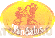 El logotipo conformado por la denominación PANSALUS escrita en letras características, en la parte central se aprecia la figura de un labriego con dos atados de trigo, dos costales y dos espigas de trigo en los costados, todo dentro de una figura ovalada, todo en los colores amarillo claro, amarillo oscuro, anaranjado y blanco; conforme al modelo adjunto