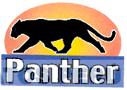 El logotipo conformado por la denominación PANTHER escrita en letras características y en la parte superior la figura estilizada de una pantera y como fondo una figura ovoide, en los colores amarillo, anaranjado, negro, blanco y azul; conforme al modelo adjunto