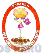El logotipo conformado por la figura oval que contiene la representación estilizada de una planta de papa y un pan; al borde, y al interior de una franja, las denominaciones PAPAPÁN y SIERRA EXPORTADORA, escritas en letras características; todo en los colores morado, blanco, rojo, amarillo, lila, fucsia, beige, marrón y verde; conforme al modelo adjunto