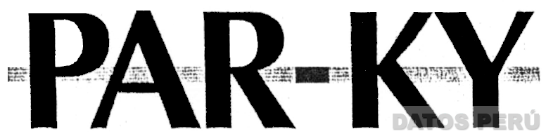 EL LOGOTIPO RECTANGULAR CONFORMADO POR LA DENOMINACION PAR-KY ESCRITA EN LETRAS CARACTERISTICAS SUPERPUESTA A UNA BARRA HORIZONTAL; CONFORME AL MODELO ADJUNTO