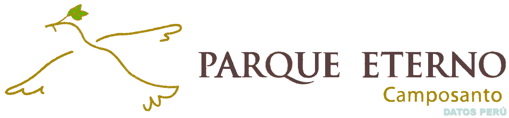 El logotipo conformado por la denominación PARQUE ETERNO, escrita en letras características de color marrón oscuro, debajo al costado la denominación CAMPOSANTO, escrita en letras características de color dorado, al costado la figura estilizada de una paloma de color dorado sosteniendo en el pico una rama de olivo de color verde con borde de color dorado; conforme al modelo adjunto