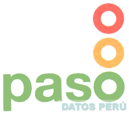 La denominación PASO escrita en letras características color verde, sobre la letra O se coloca un círculo color anaranjado y sobre éste último un círculo color rojo; conforme la modelo adjunto