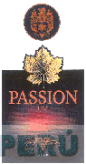 La etiqueta conformada por la figura estilizada de una hoja de vid en colores dorado y negro, bajo la cual se aprecia la denominación PASSION 1821 escrita en letras características de color anaranjado, en la parte inferior se dispone la figura de un viñedo al atardecer en colores rojo y anaranjado y la figura estilizada de un racimo de uvas en color anaranjado, todo dentro de un fondo de color negro, en la parte superior un círculo de color negro dentro del cual se encuentra un escudo en color anaranjado; conforme al modelo adjunto
