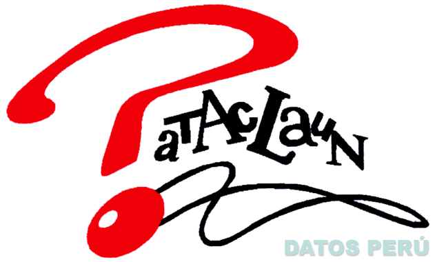 El logotipo conformado por la denominación PATACLAUN escrita en letras características, donde la letra P se encuentra representada por el signo de cierre de interrogación, cuyo punto está seguido de un trazo irregular, todo en la combinación de colores rojo, negro y blanco; conforme al modelo adjunto