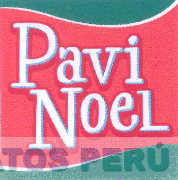 El logotipo conformado por la denominación PAVI NOEL escrita en letras características y dos franjas irregulares en la parte superior e inferior, todo en la combinación de colores verde, blanco, rojo y celeste; conforme al modelo adjunto