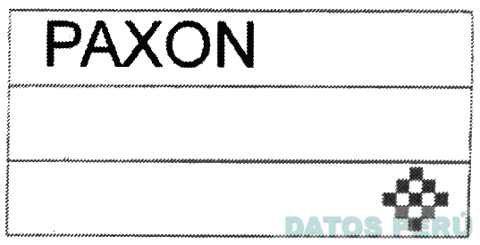 La etiqueta rectangular de tres campos horizontales conteniendo la denominación PAXON en el campo superior y en el campo inferior una figura romboidal formada por pequeños cuadrados; conforme al modelo adjunto